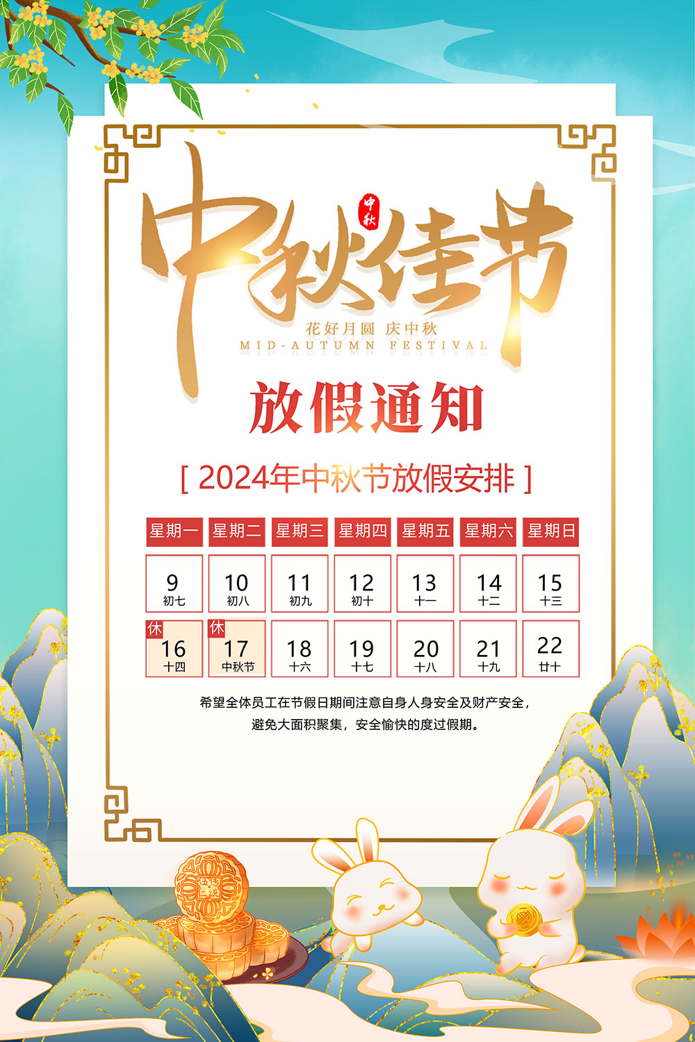 山东东达机电有限责任公司2024年中秋放假通知